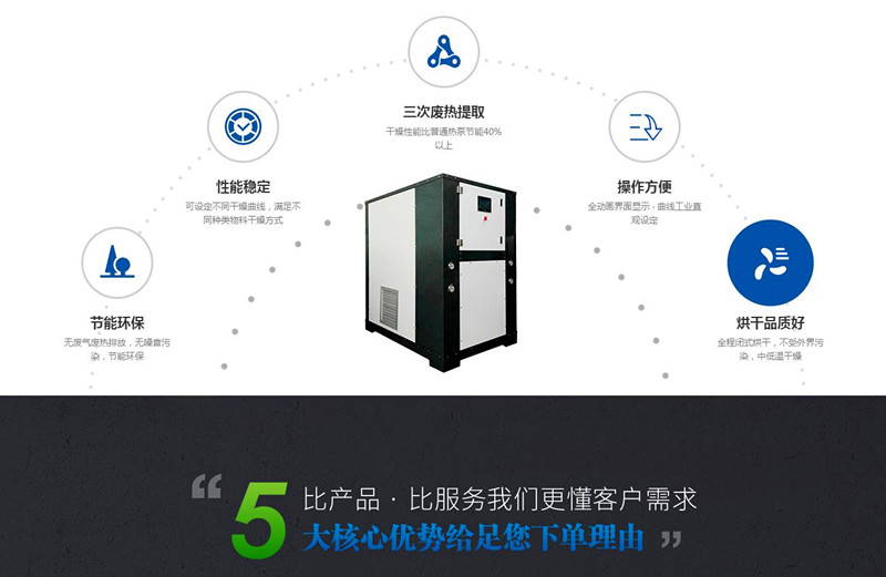 料所需的烘干參數(shù)提供不同的熱源溫度,對(duì)于大多數(shù)熱敏性物料,熱泵烘干機(jī)可精準(zhǔn)實(shí)效的將溫度控制在攝氏5-80度之間。